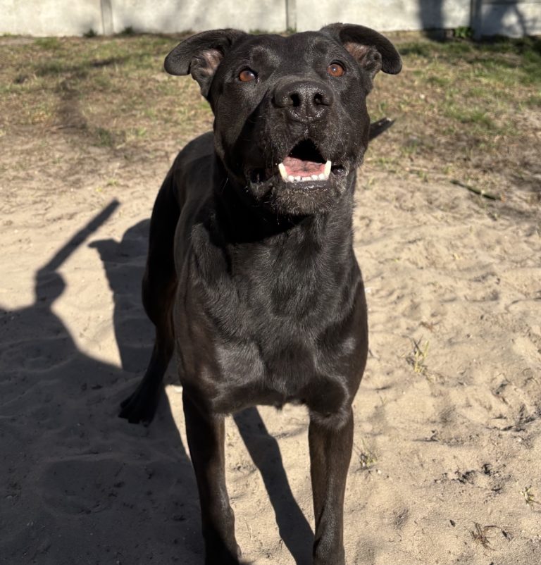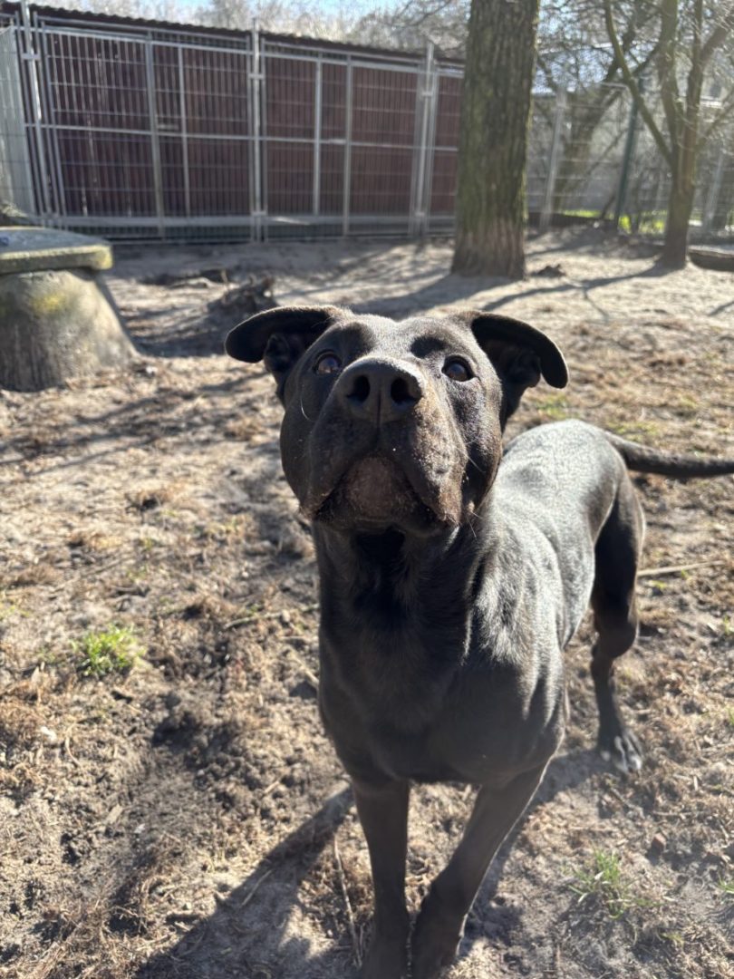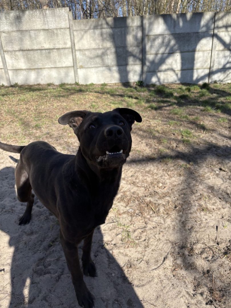 Bąbel jest bardzo energicznym psem. Uwielbia chodzić na spacery i biegać. Jest łagodny do ludzi. Nie toleruje innych psów. Jest silnym psem. Jest w typie amstaffa
