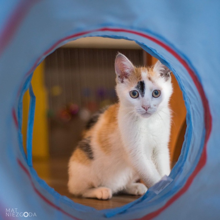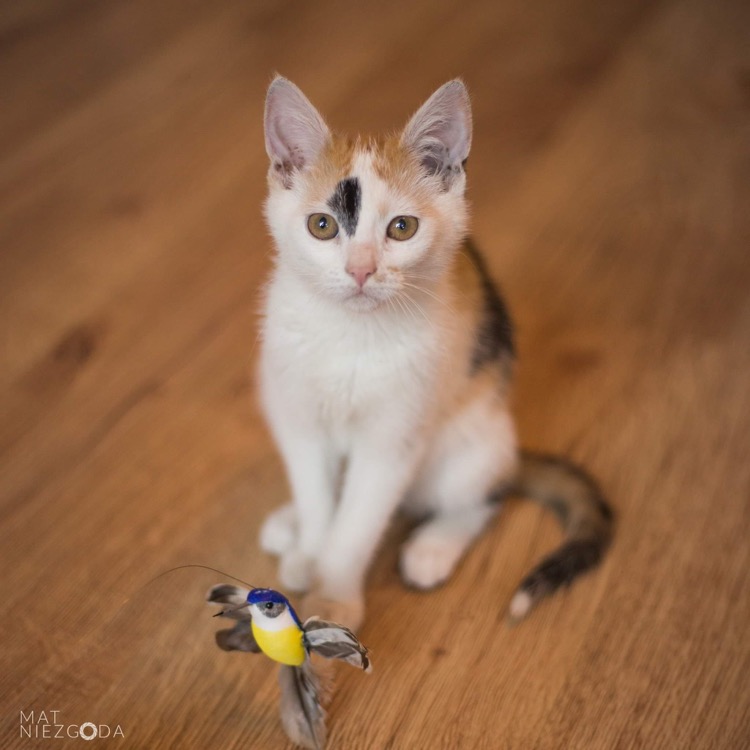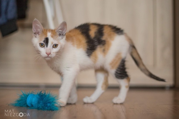 Ok 8 tyg koteczka z charakterem. Jak to trikolorka 🙂 Troszke plochliwa, inne koty potrafi bałamucić 🙂 Sama decyduje o tym kiedy i kto ją głaszcze. Z innym kotem potrafi sie ładnie bawić ale widać, że posiada dominujący charakterek.