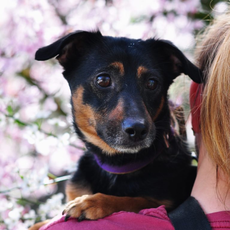 Figa to malutka, bardzo przyjazna sunia. Daje się brać na ręce i lubi jak się ją głaszcze. Ładnie chodzi na smyczy.