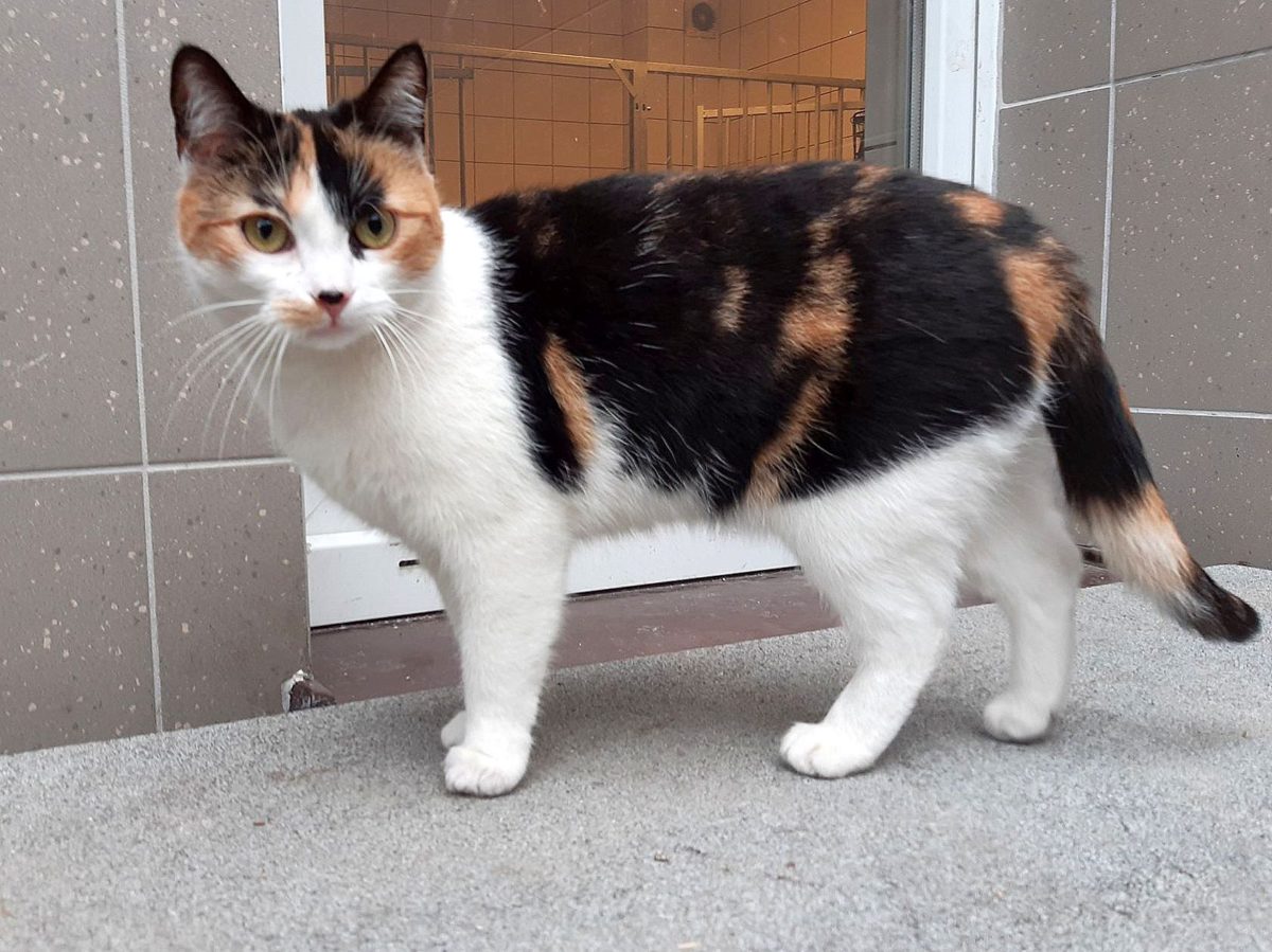 Flora to bardzo spokojna kotka. W grupie z innymi kotami dobrze się dogaduje. Przed człowiekiem się nie chowa, jest raczej odważna, ale kiedy ktoś próbuje ją pogłaskać robi unik ale nie prycha.