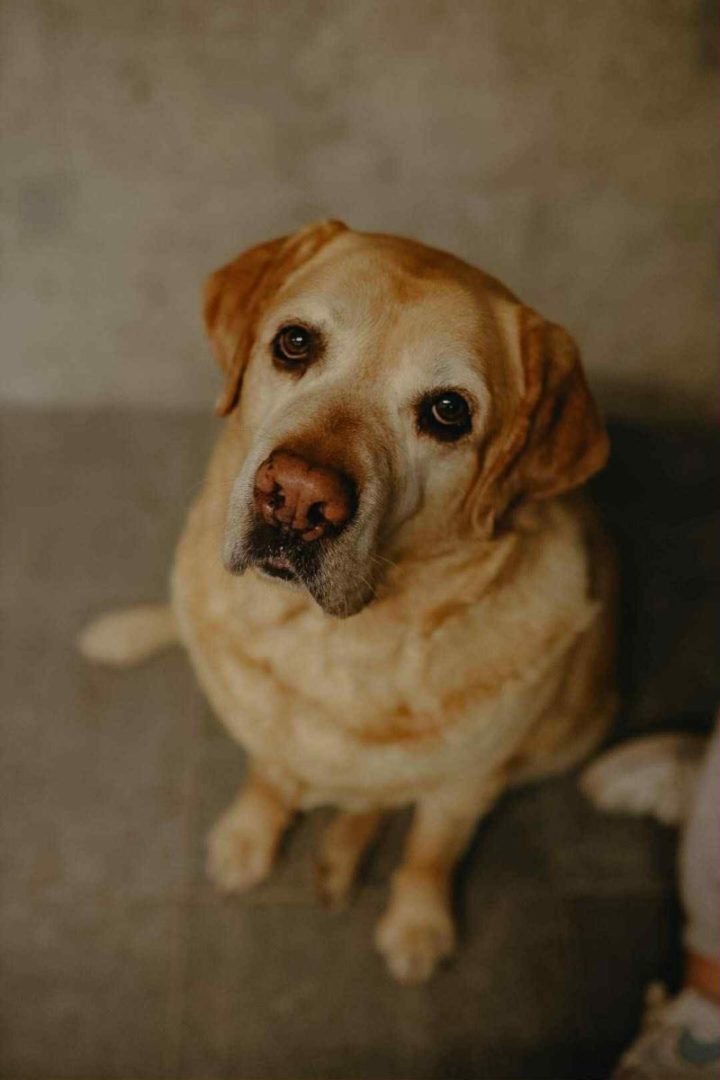 Hugo. Starszy piesek w typie labradora. Ma sporo nadwage, jest w trakcie diety. Na spacerach z racji masy jak pociagnie to można to poczuć na ręce. Jest łagodny i przyjazny. Uwielbia przytulasy i tarzanko na trawce. Ma okolo 8 lat.