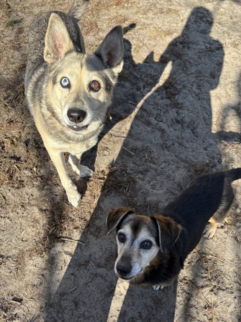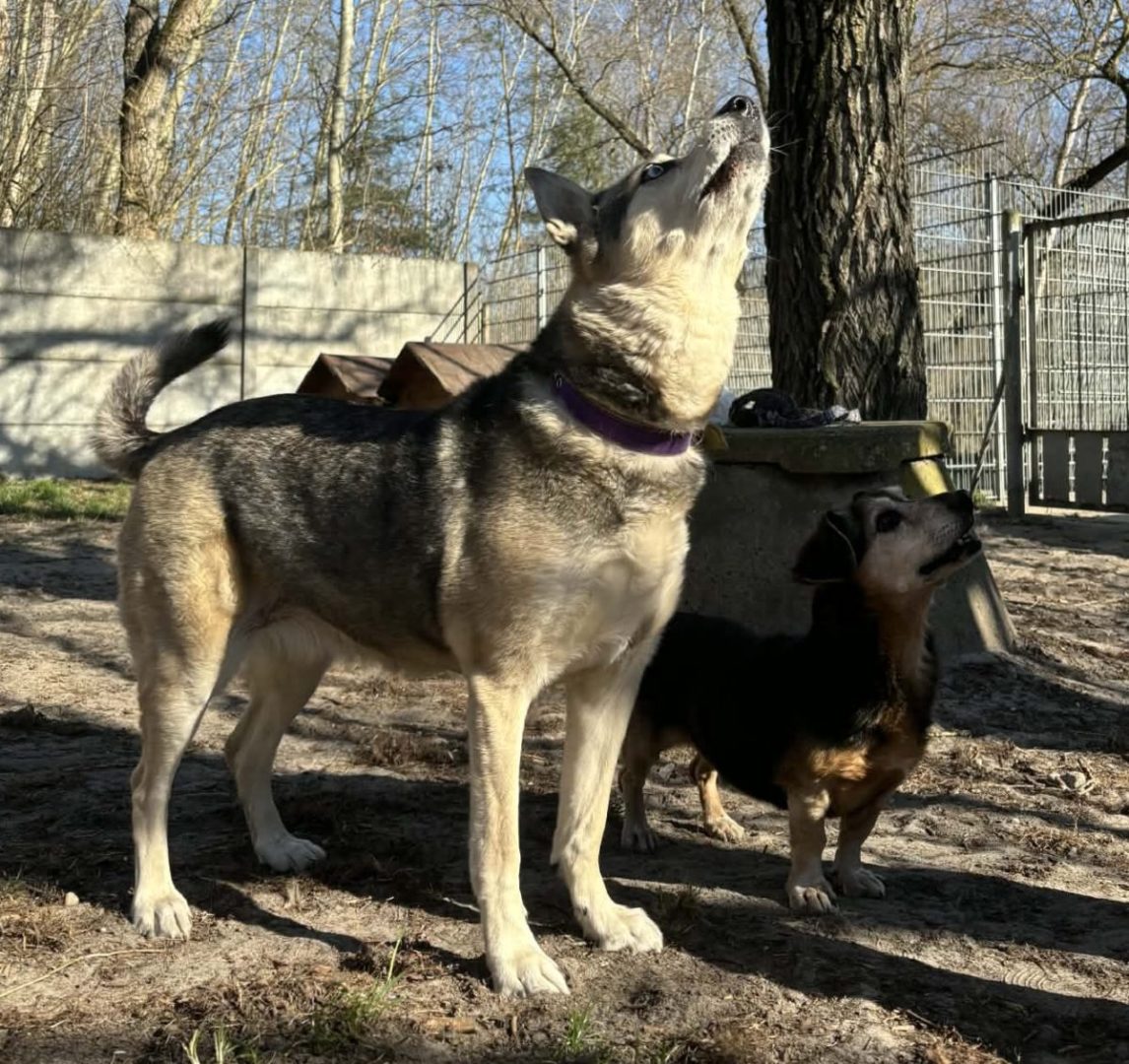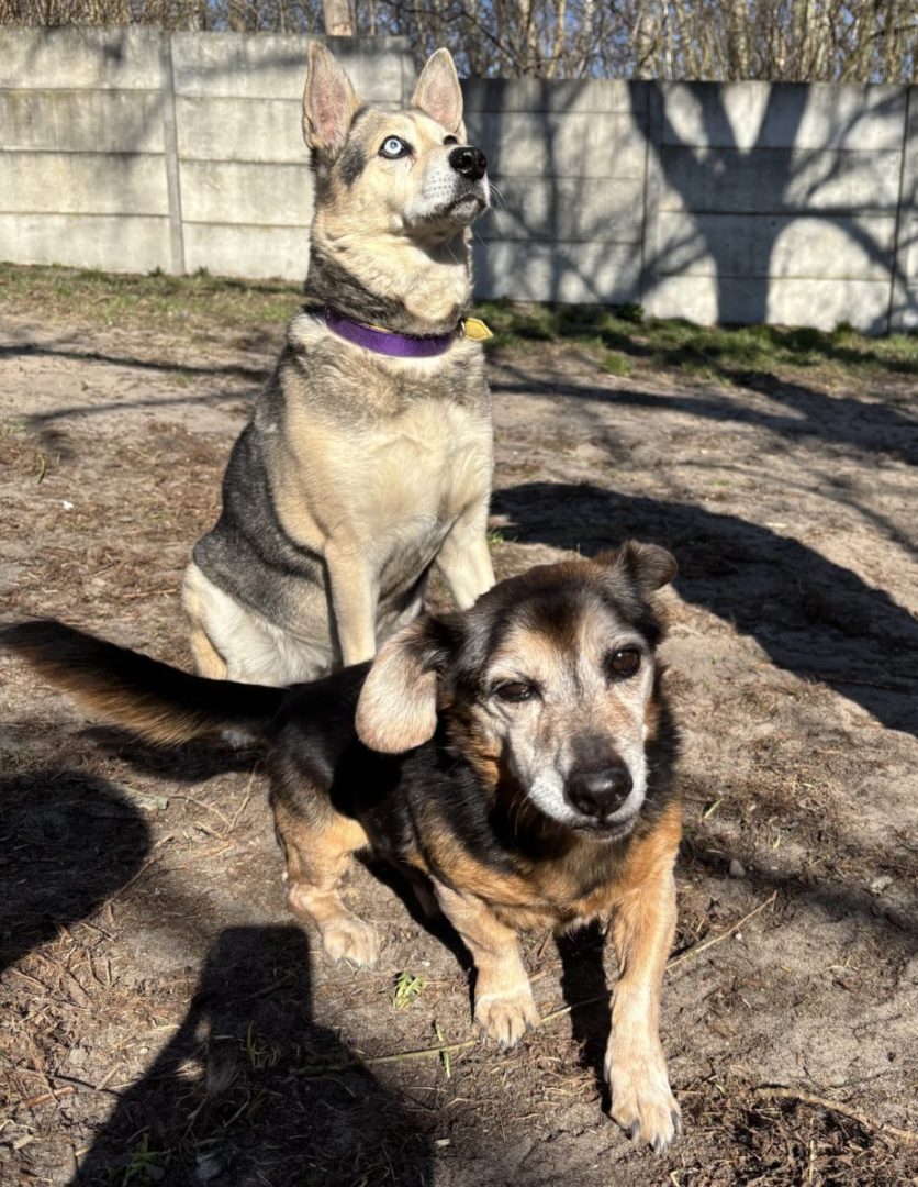Mela i Bąbelek to już starsze psiaki. Są bardzo grzeczne i łagodne. Ładnie chodzą na smyczy, nie ciągną