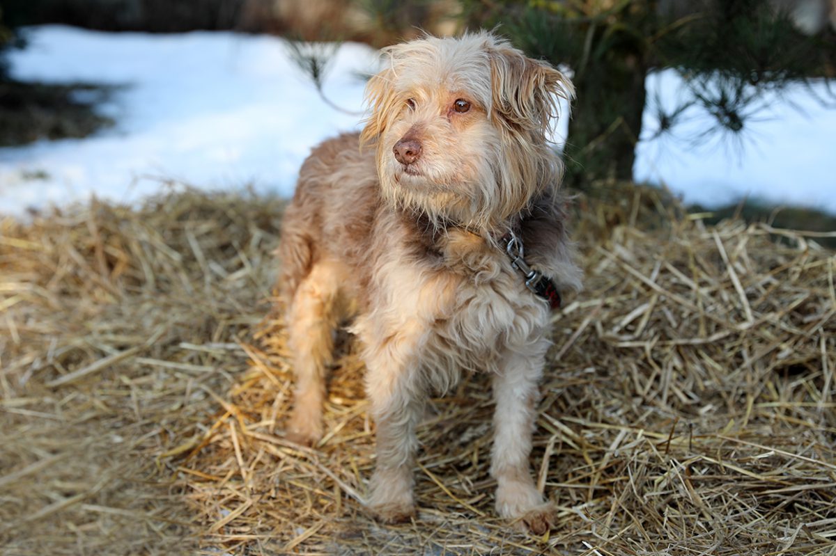 Meszek jest bardzo nieśmiały i bojaźliwy. Jest przy tym łagodny i grzeczny. Piesek został wystrzyżony przez wolontariuszkę, miał sporo kołtunów. Troszkę się bał, widać, że nigdy nie był czesany. Jest cichym psem.