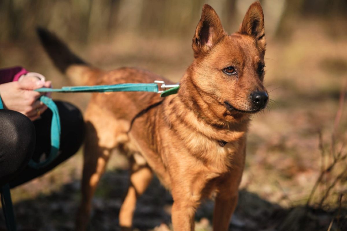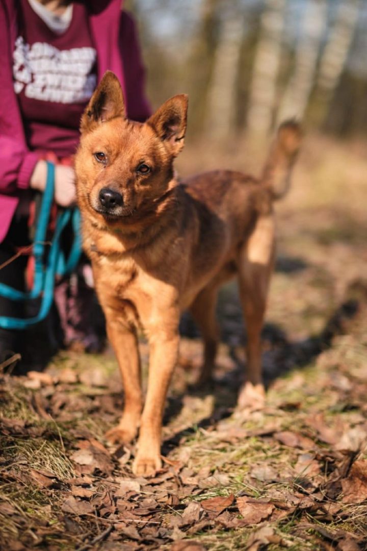 Rudzik. Mlody piesek. Akceptuje inne psy. Jest wesoły i kontaktowy. Bardzo towarzyski ale też lękliwy. Nie lubi nagłych ruchòw rekami itd. Kuli sie wtedy. Przy zapinaniu obrozki ma obawy. Dlatego przebywa w zapietej obrozce i wtedy nie ma problemu we wzieciu go na spacerek. Nie ciagnie ani nie szarpie. Idzie spokojnie.