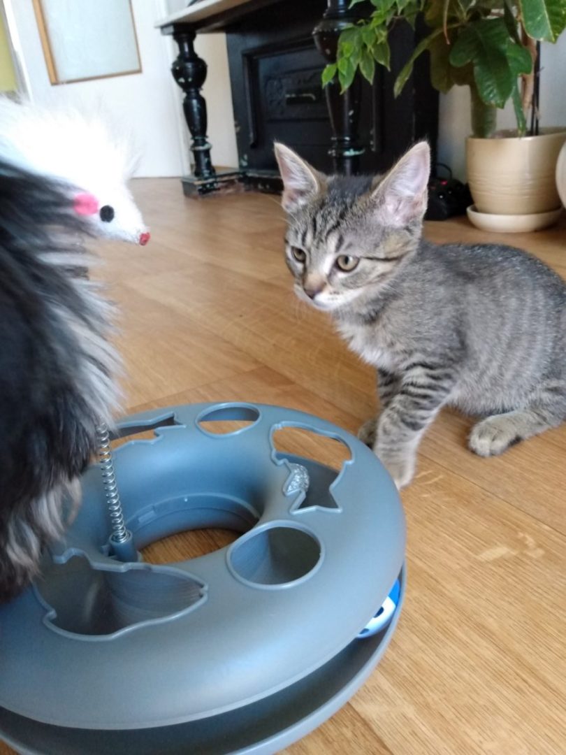 Zuza jest bardzo ruchliwa. Przyzwyczajona do moich psow i doroslych kotow. Ogolnie z tych bardziej energetycznych. Uwielbia sie bawic. Kontaktowa, wesola, niczego sie nie boi.